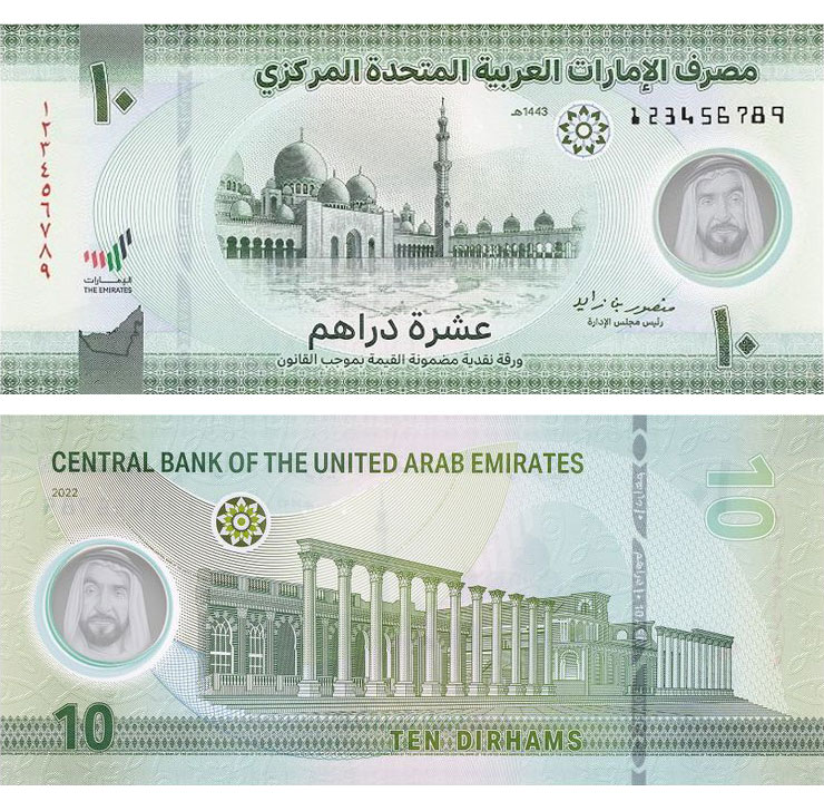 С 2021 года Центробанк ОАЭ выпускает полимерные купюры. Они отличаются долговечностью и экологичностью. Новая серия уже получила признание в регионе EMEA.